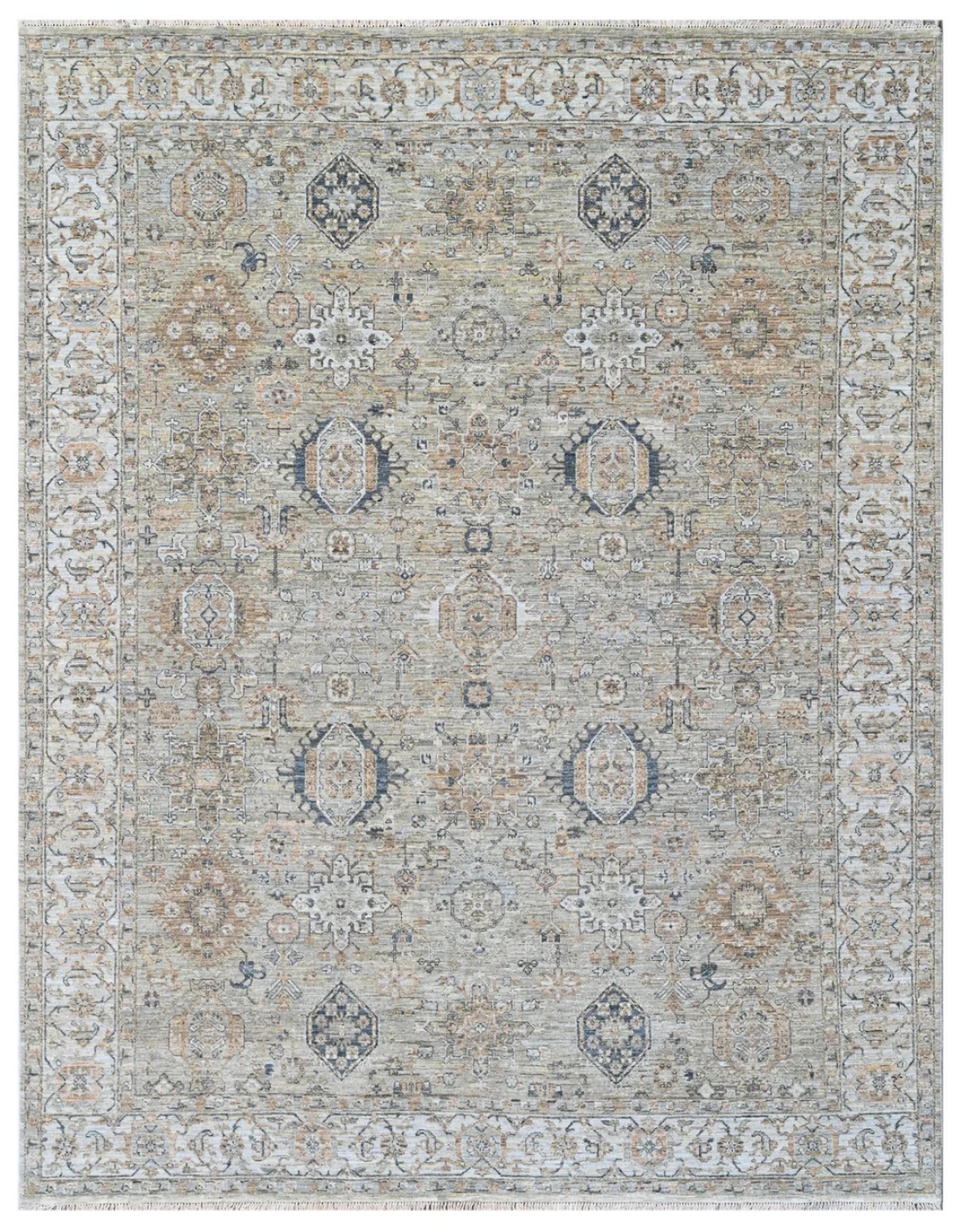 Its balanced patterning—symmetrical yet gently faded—creates a feeling of visual poetry. Traditional medallions and floral accents emerge subtly from the surface like echoes of the past, speaking to eras where every thread held meaning. The washed-out look, with its intentionally abrash variations, imparts an antique soul to a modern heirloom. This piece is designed to be quietly compelling—perfect for interiors that favor calm over chaos, refinement over trend. What makes Dustveil Manuscript particularly striking is its ability to complement both classical and minimalist aesthetics. It lends depth and story to contemporary spaces while feeling right at home amid vintage furniture, stone accents, or richly grained wood. The wool used not only enhances softness but offers natural resilience and warmth, making it suitable for both daily living and spaces curated with intention. |