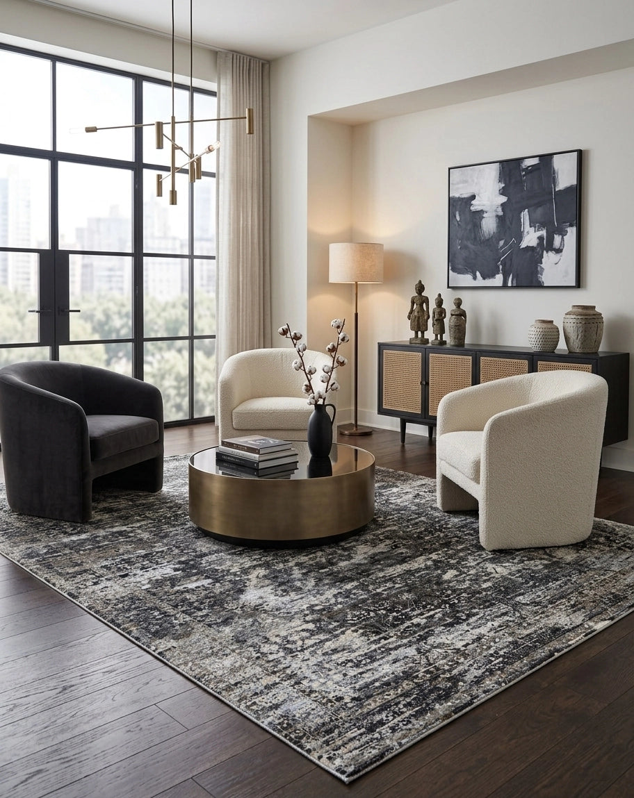 - Visual appearance may change based on rug placement and viewing angle.