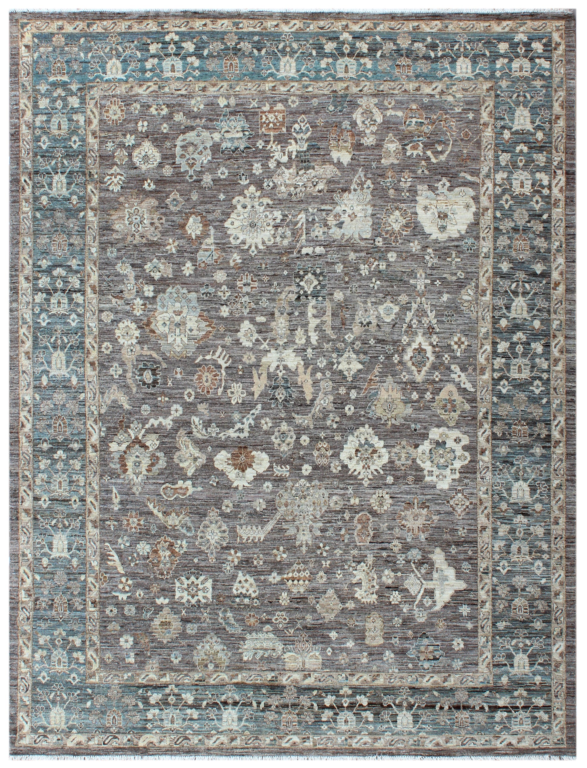 Duskworn Tale captures the quiet drama of evening light fading across centuries-old stone and textile. With its muted undertones and intricate patterning, this hand-knotted wool rug evokes a sense of time-weathered elegance. The palette—layered with earthy greys, dusk blues, and softened ivory—whispers stories from ancient courts and desert twilight, lending your space both depth and softness. Every detail, from the delicate motifs to the gently fading hues, is a tribute to memory and craftsmanship.