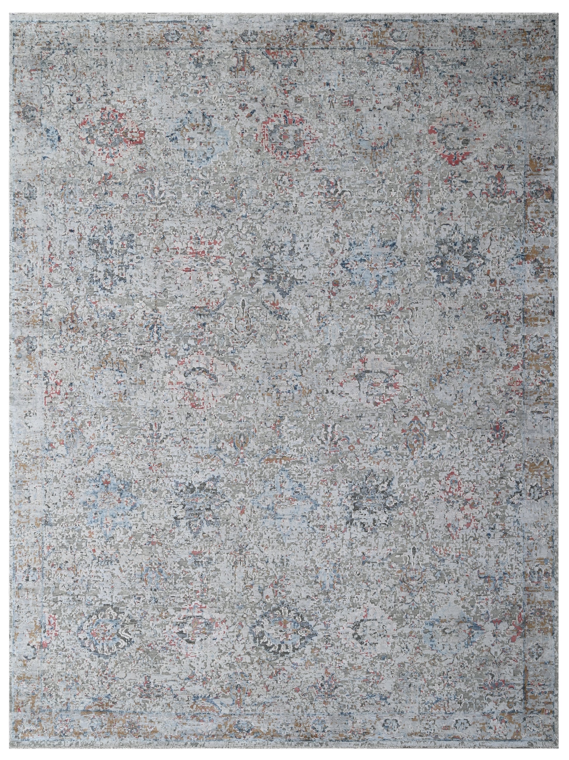 The Frosted Tapestry rug embodies quiet sophistication and timeless artistry, making it a statement piece for interiors that celebrate subtle elegance. With a carefully woven blend of soft steel, frosty ivory, muted blues, and delicate blush undertones, this rug captures the beauty of a weathered textile while offering the durability of a modern weave. Its distressed pattern, reminiscent of antique tapestries, provides both visual depth and a sense of history, transforming any room into a serene and welcoming space.