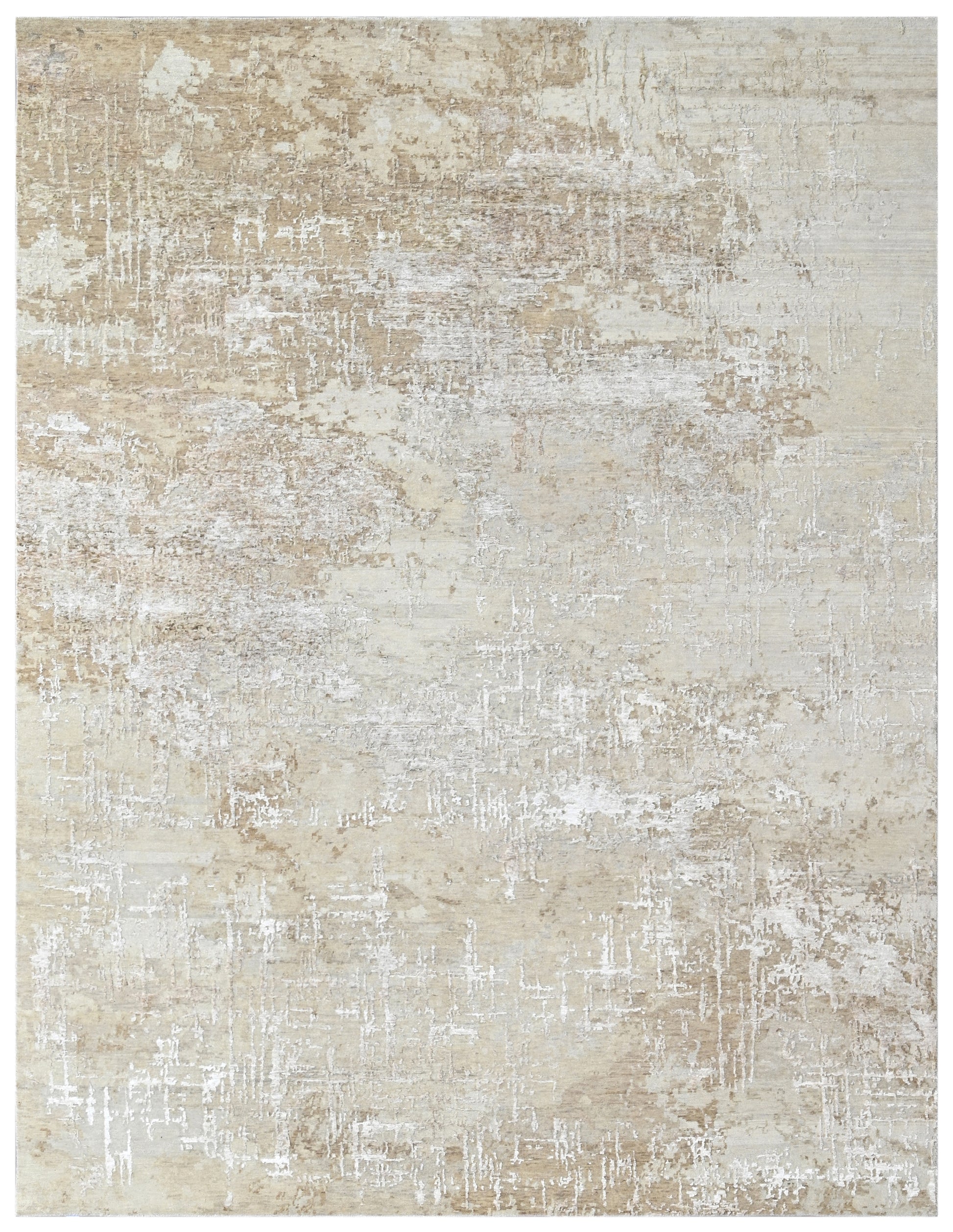 Step into understated luxury with Luna Fade, a hand-knotted rug crafted entirely from luminous bamboo silk. Inspired by the gentle radiance of moonlight fading across a quiet landscape, this design blends muted tones of beige, ivory, and taupe into an abstract composition of light and shadow. Its organic, textured pattern adds depth and sophistication, creating a serene foundation for your interior.