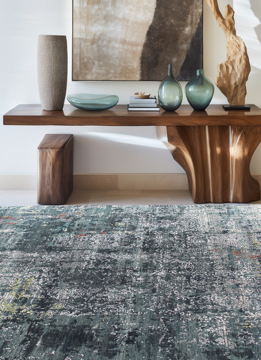 Handcrafted from a luxurious combination of wool and bamboo silk, the Misty Grove offers exceptional softness underfoot, complemented by a gentle sheen that enhances the intricacy of its design. Wool provides durability and warmth, while bamboo silk adds a smooth, silky finish that catches the light beautifully, creating a dynamic interplay of texture and luminosity. The natural fibers used in this piece ensure not only a sustainable choice but also long-lasting resilience, making it suitable for both modern and classic interiors.More than just a floor covering, the Misty Grove is a work of art that transforms any room into a sanctuary of calm and sophistication. Its contemporary yet timeless design seamlessly integrates with various decor styles, offering both aesthetic appeal and practical comfort. |