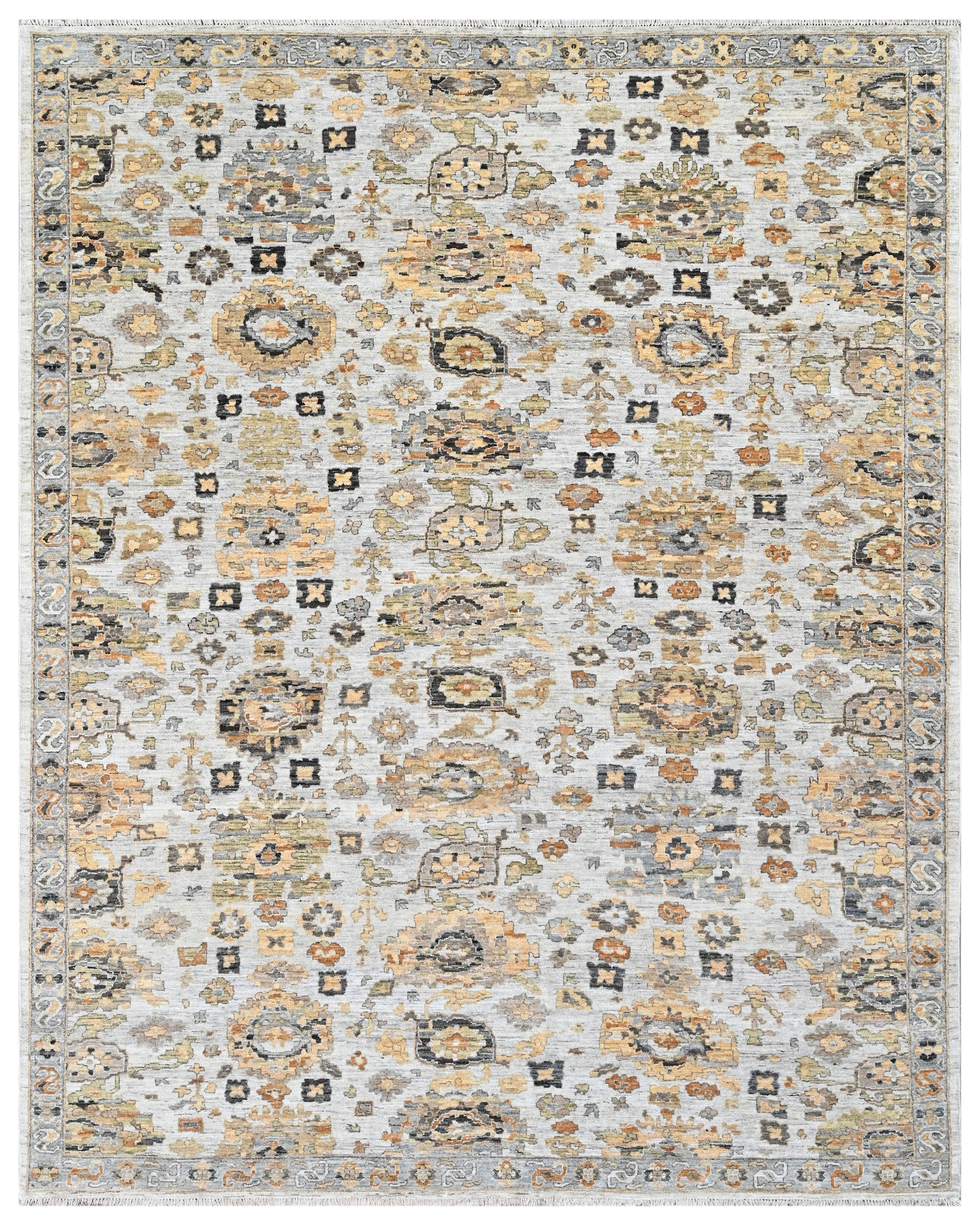 This carpet is meticulously hand-knotted in 100% wool using the Persian knot technique, a method known for producing some of the world's most intricate and durable rugs. The tight knotting enhances both pattern clarity and structural integrity, ensuring Sundown Relic will retain its character for generations. The wool yarns are naturally dyed, creating nuanced tones and a gentle abrash effect that lends the piece a vintage charm. Timeless in every sense, Sundown Relic is designed to anchor a room with quiet strength. Whether placed in a formal dining space, a cozy library, or a contemporary lounge, it balances sophistication with heritage. This rug doesn’t shout for attention — it draws you in, offering depth, texture, and a touch of nostalgia with every step. |