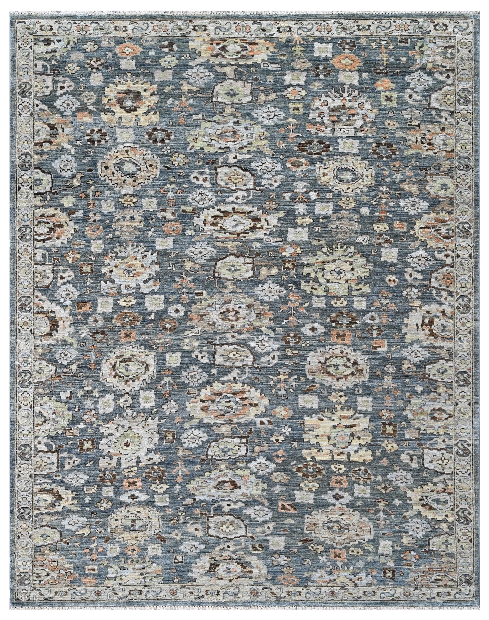 Twilight Heirloom brings together the mystery of dusk with the mastery of age-old craftsmanship. Awash in deep slate blue, faded copper, ivory, and hints of parchment, this rug carries the essence of a storied past—like the last light of day settling over weathered stone walls. The intricate all-over pattern, featuring stylized florals, medallions, and geometric forms, evokes a sense of lived-in elegance and ancestral richness.