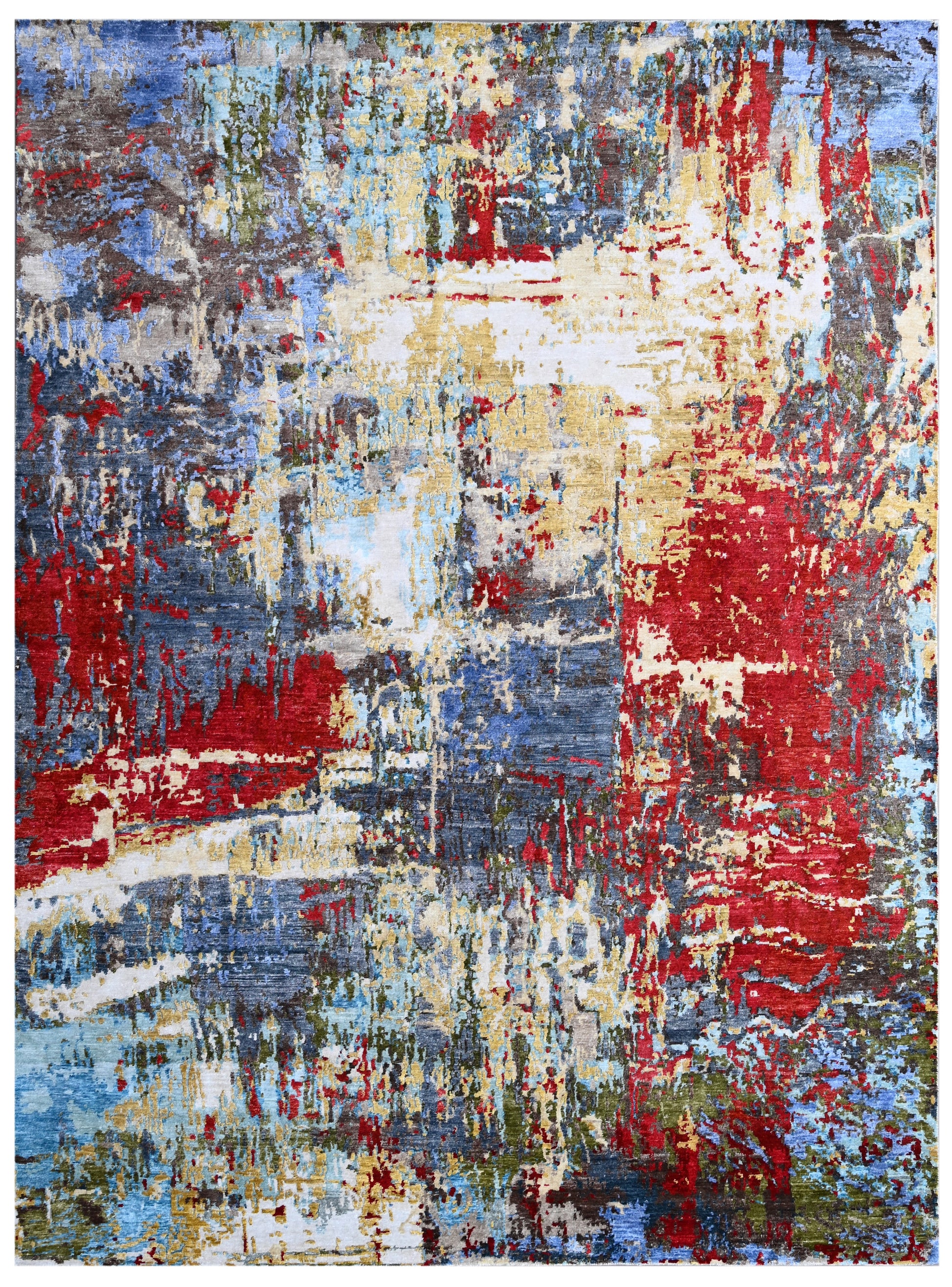 The artwork-like pattern bursts with color: fiery reds, deep blues, sunlit yellows, and hints of forest green collide in a powerful visual composition. It’s reminiscent of an urban cityscape at golden hour, where graffiti, reflections, and textures merge into a living mosaic. The rug exudes artistic energy and spontaneity — every inch a celebration of creative freedom. Its painterly abstraction invites emotion and interpretation, making it a statement piece for spaces that crave individuality and color. Ideal for eclectic, contemporary, or art-forward interiors, Urban Rhapsody transforms any room into a gallery of expression. Whether grounding a modern loft, accenting a creative workspace, or energizing a neutral palette, this rug offers more than aesthetics — it offers presence. A bold homage to artistry and tradition, it’s the perfect balance of technique and soul underfoot. |